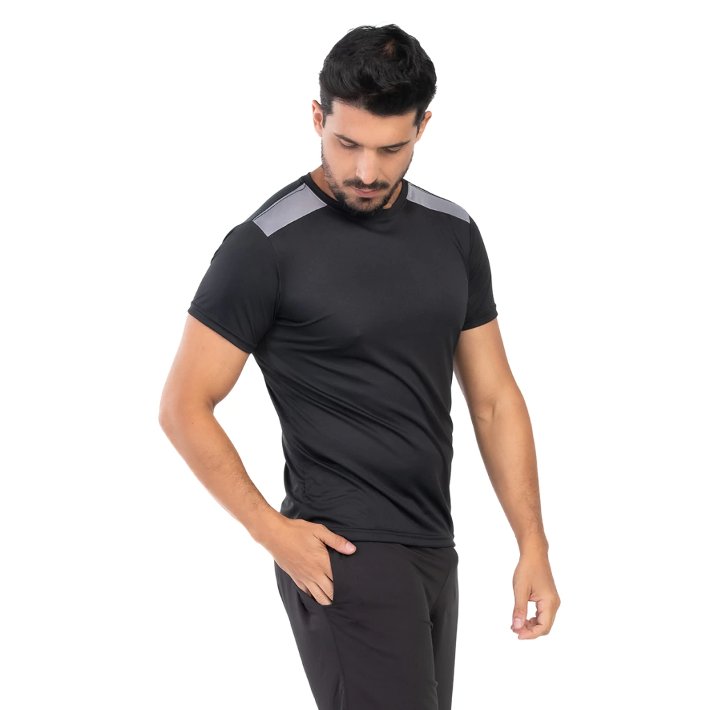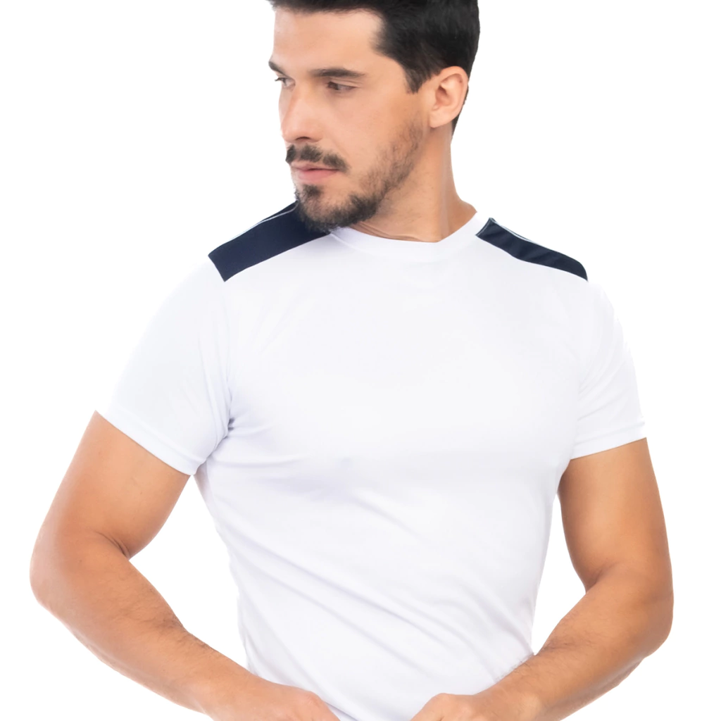 Camiseta masculina dry fit de alta performance, ideal para treinos, corridas, academia e uso casual no dia a dia. Confeccionada em tecido tecnológico 100% poliéster, leve e respirável, proporciona secagem rápida, conforto térmico e ótima mobilidade. O diferencial está no recorte contrastante nos ombros, que traz aspecto esportivo moderno e sofisticado. Possui toque macio, caimento anatômico sem marcar, gola reforçada e costuras resistentes que acompanham os movimentos sem incomodar. Perfeita para quem busca estilo, conforto e funcionalidade em um só produto.